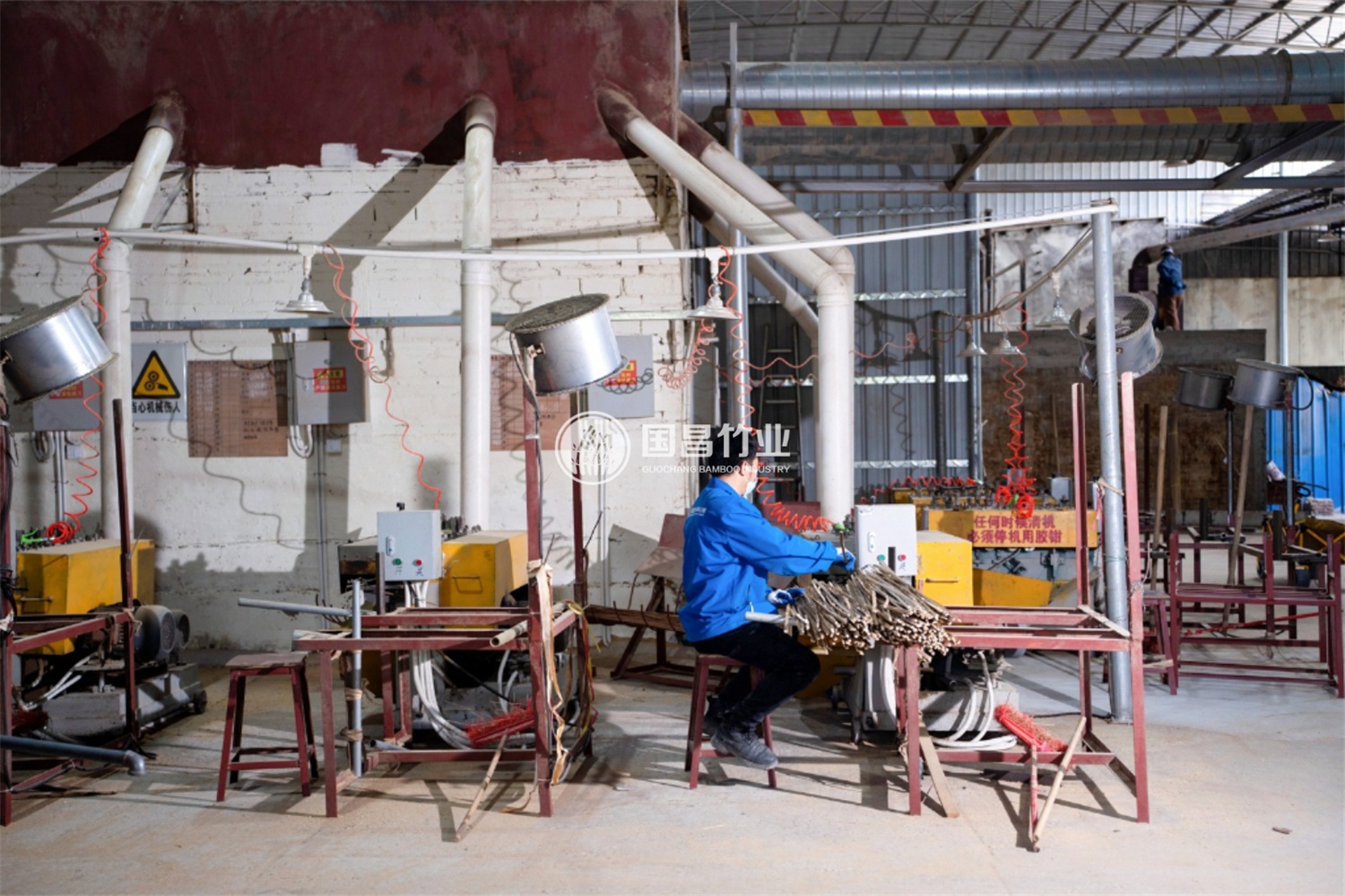 国昌二厂为半成品加工基地,占地面积约15亩,配备先进的拉丝机、定型机和大型烘干房。主要负责竹片的拉丝成签、热处理定型、烘干脱水等关键工序。